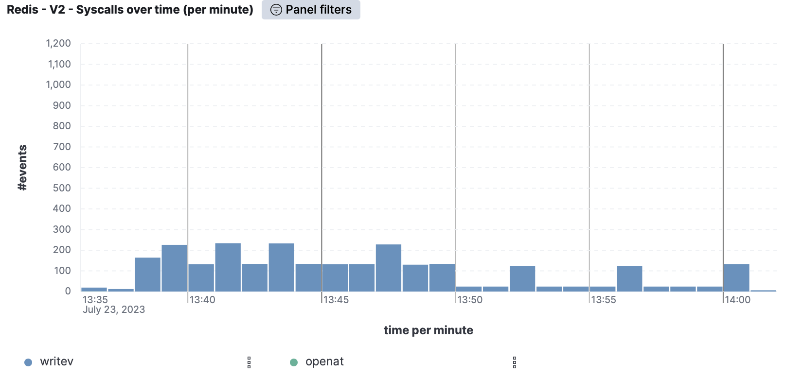 Figure 1. Log file access pattern, depicting system calls issued over time per minute (V2)