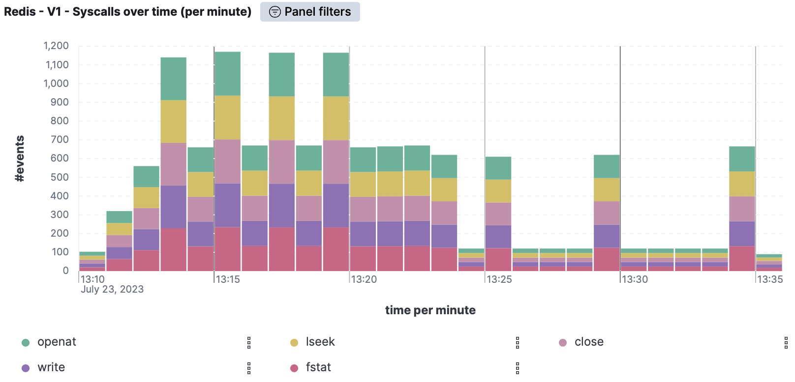 Figure 1. Log file access pattern, depicting system calls issued over time per minute (V1)
